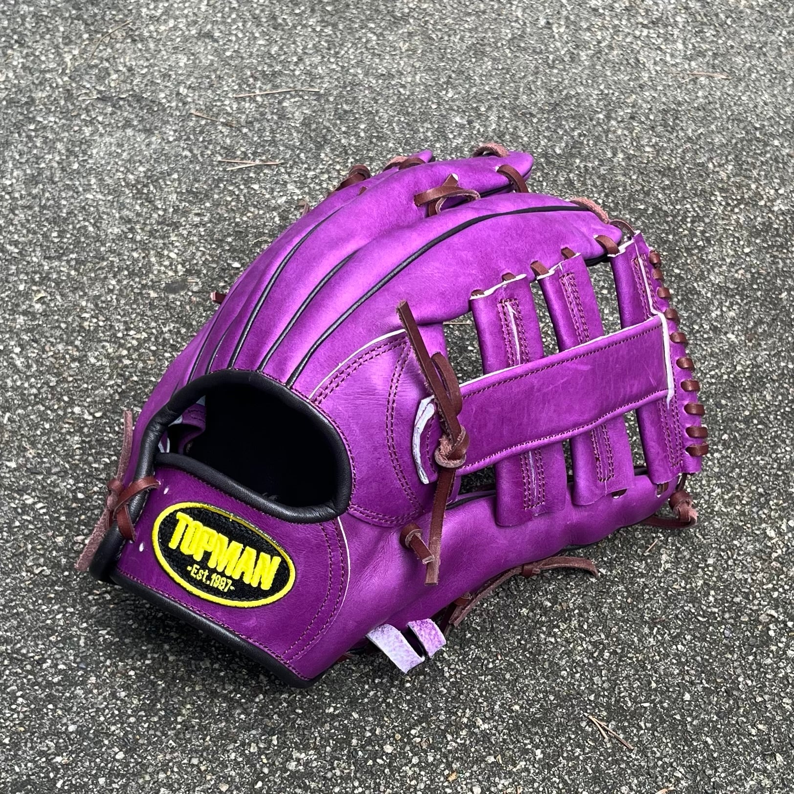 グローブの町、奈良県三宅町で作り上げた、外野手向けに大きく設計し、更に小指二本入れのグローブです。
